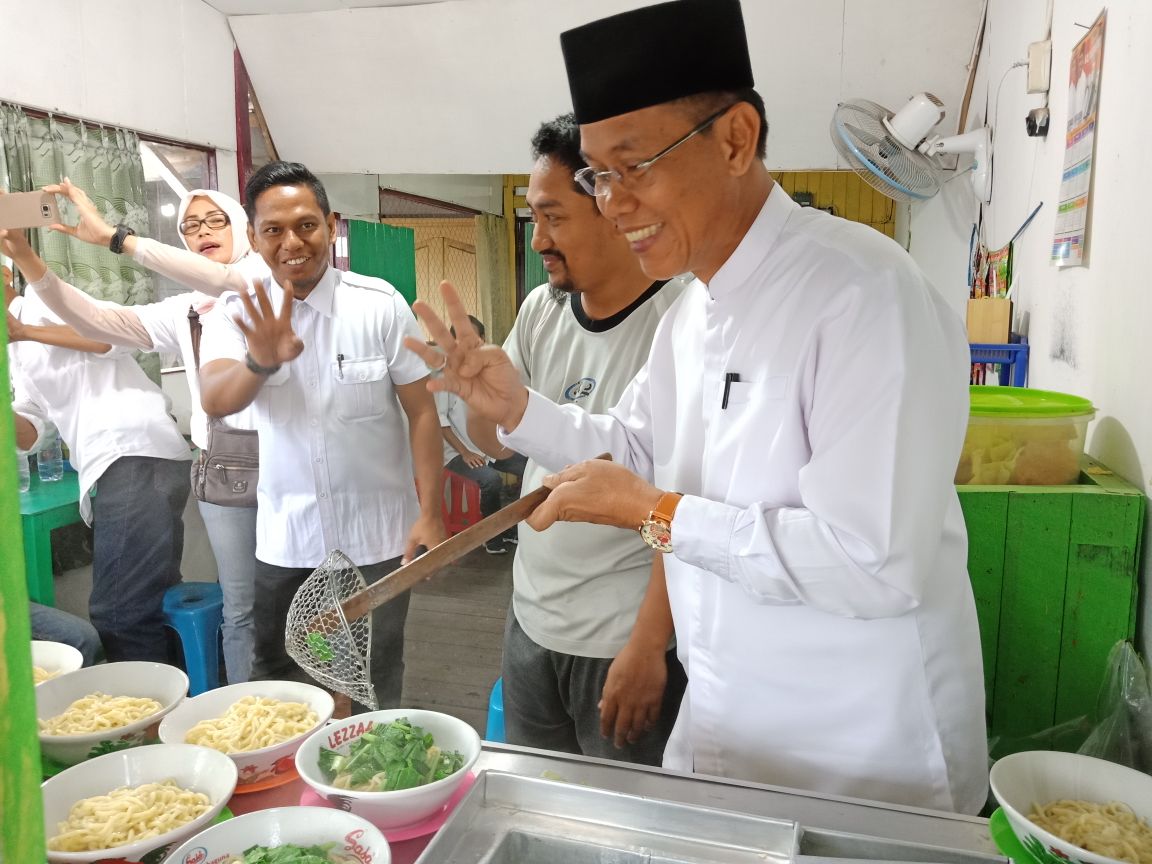 Selain menyapa penjual mie ayam, Rusmadi juga menyempatkan menyapa penjual buah dan sayur-sayuran berada di samping warung mie ayam.