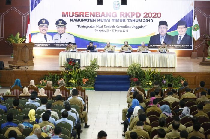 “Saya minta agar rencana pembangunan Tahun 2020 hendaknya dilakukan lebih cermat dan terintegratif dan terorganitif dengan tetap memperhatikan dan mendukung prioritas pembangunan di daerah bersinergi dengan Provinsi dan Pusat,” beber Ismu ketika membuka Musyawarah Perencanaan Pembangunan (Musrenbang) Rencana Kerja Pemerintah Daerah (RKPD) Kabupaten Kutim Tahun 2020 yang dimotori oleh Badan Perencanaan Pembangunan Daerah (Bappeda) Kutim di area Ruang Akasia Gedung Serba Guna (GSG) kawasan Bukit Pelangi, Selasa (26/3/2019).