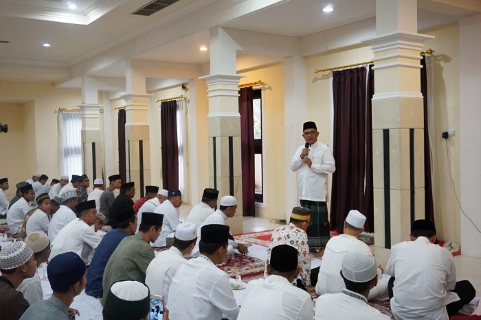 Kegiatan buka puasa bersama ini diawali dengan sambutan oleh Bupati Muharram dan tausiah agama serta dilanjutkan dengan salat magrib berjamaah.