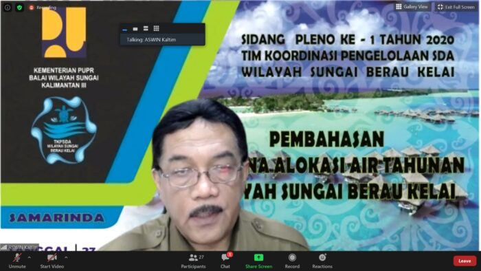 BERITAKALTIM.CO- Kepala Badan Perencanaan Pembangunan Daerah (Bappeda) Kaltim Prof. Dr. IR. H. M. Aswin, MM membuka Sidang ke-I Tahun 2020 Tim Koordinasi Pengelolaan Sumber Daya Air (TKPSDA) WS Berau-Kelai pada Selasa (27/10/2020).