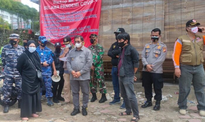 Walikota Balikpapan Rizal Effendi bersama Forkopimdo memberikan amanah kepada Camat Balikpapan Kota Heru Ressandy untuk membacakan SK penutupan Warkop Daeng 7 dihadapan pemilik Warkop, Minggu pagi (7/02/2021).
