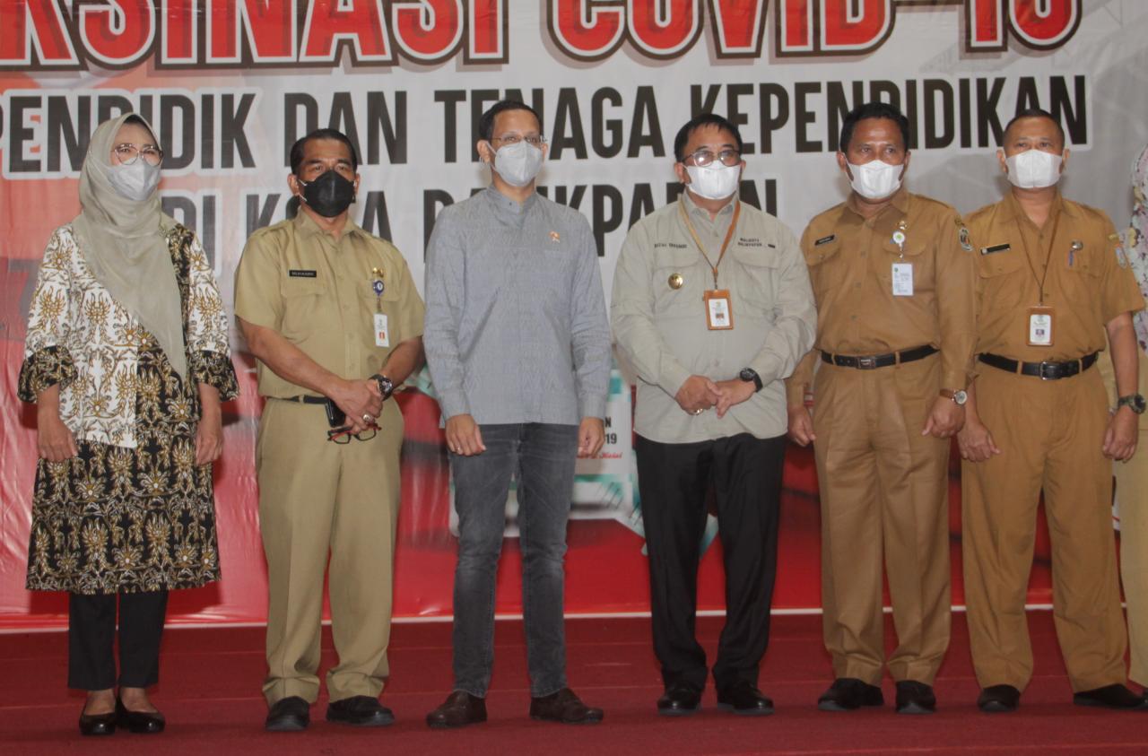 BERITAKALTIM.CO- Menteri Pendidikan dan Kebudayaan (Mendikbud) Nadiem Makarim memberikan apresiasinya kepada Pemerintah Kota Balikpapan yang memprioritaskan guru untuk dilakukan vaksinasi sebagai persiapan pelaksanaan pembelajaran tatap muka (PTM) terbatas di tengah pandemi Covid-19.