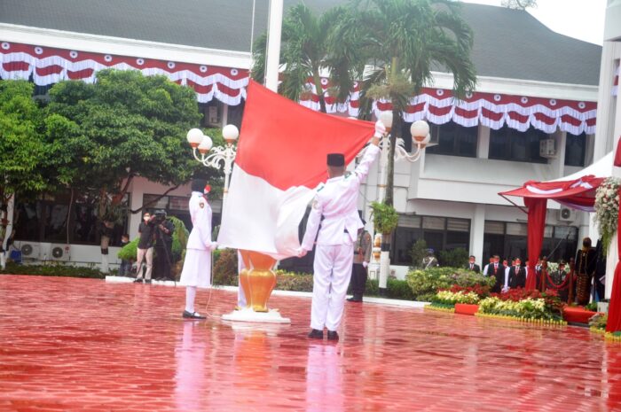 BERITAKALTIM.CO- Pemerintah Kota (Pemkot) Balikpapan memperingati Hari Ulang Tahun (HUT) RI ke-76 di halaman kantor Pemkot Balikpapan, Jalan Jenderal Sudirman, Klandasan Ilir, Balikpapan Kota (Balkot), Selasa (17/8/2021).