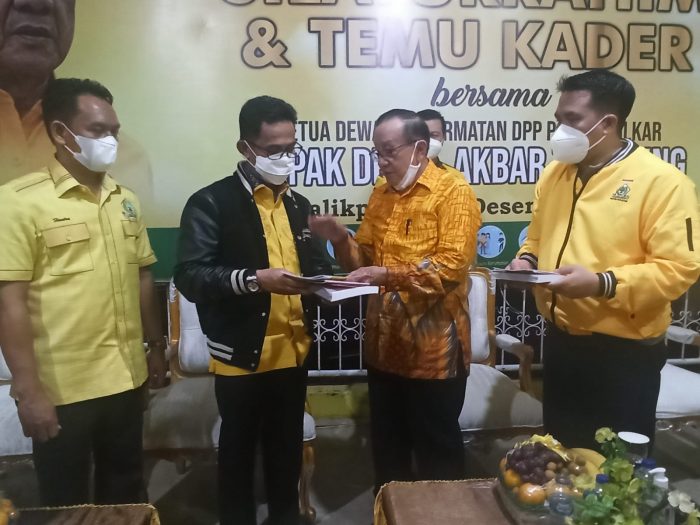 Diakhir pemaparan Akbar Tandjung dihadapan para kader partai Golkar Balikpapan, mantan Ketua Partai Golkar yang juga pernah menjabat Ketua DPR RI tahun 1999-2024 dan berbagai jabatan Menteri lainnya itu, memberi buku hasil tulisannya dan diserahkan kepada Rahmad Mas’ud agar menjadi motivasi kader Partai Golkar Balikpapan.