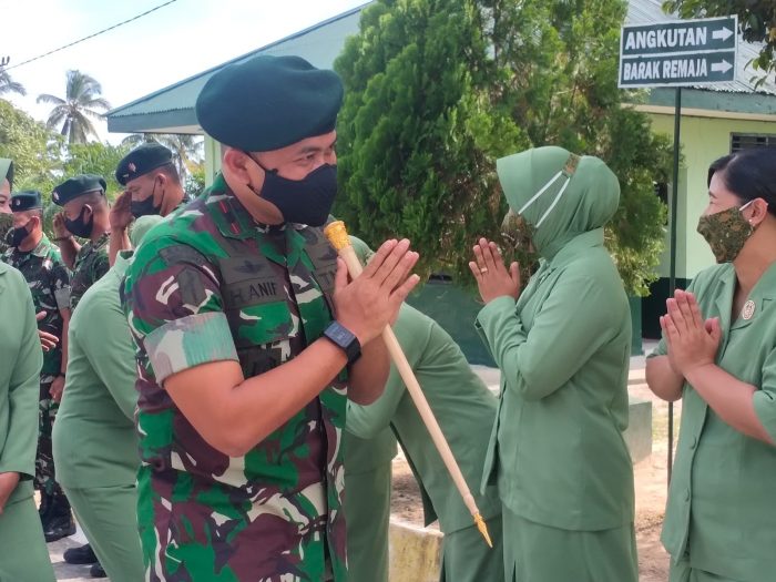 BERITAKALTIM.CO- Komandan Batalyon (Danyonif) Raider 600/Modang, Mayor Inf Karuniawan Hanif Arridho, SE, MM berserta Ketua Persit Kartika Chandra Kirana (KCK) Cabang XII Yonif Raider 600/Modang Ny Emma Hanif Ariddho mengunjungi Kompi Senapan C Yonif Raider 600/Modang, Jalan Provinsi Kilo 17 Kelurahan GiriPurwa,Kecamatan Penajam, Kabupaten Penajam Paser Utara, Senin (17/1/2022).