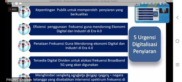 “Dengan digitalisasi sistem penyiaran televisi, maka penggunaan pita frekuensi akan lebih optimal dan hasil efisiensinya (disebut Digital Dividend) dapat digunakan untuk pemerataan infrastruktur digital dan peningkatan layanan internet,” sambungnya.
