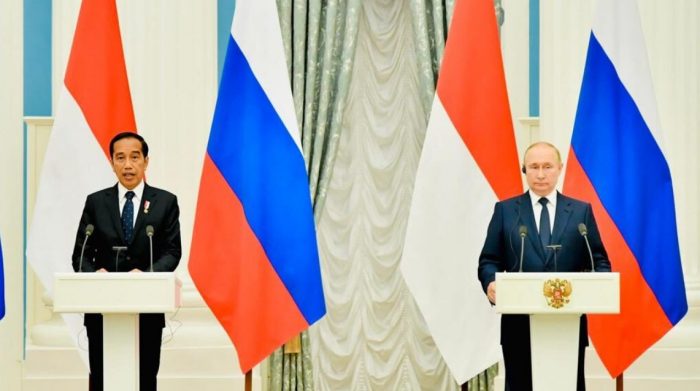 “Isu perdamaian dan kemanusiaan selalu menjadi prioritas politik luar negeri Indonesia. Dalam konteks inilah, saya lakukan kunjungan ke Kyiv dan Moskow,” kata Presiden Jokowi saat menyampaikan keterangan pers bersama dengan Presiden Putin.