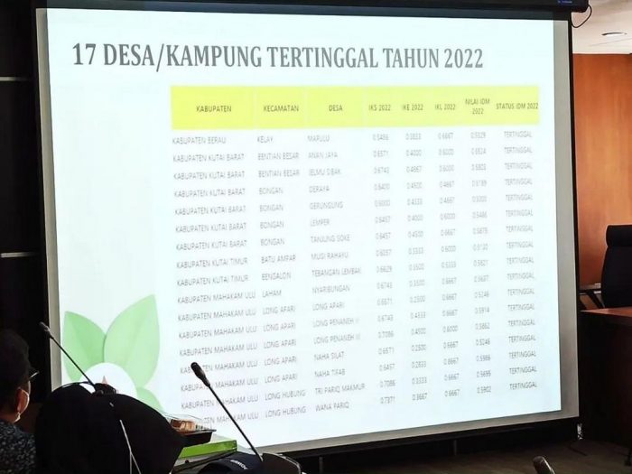 Kepala Dinas Pemberdayaan Masyarakat dan Pemerintahan Desa Kaltim, Syirajudin dalam rapat tersebut menyampaikan, pada 2022 ini Provinsi Kaltim sudah tidak memiliki desa sangat tertinggal, namun masih terdapat 17 desa tertinggal yang akan menjadi target pengentasan di Tahun 2023.