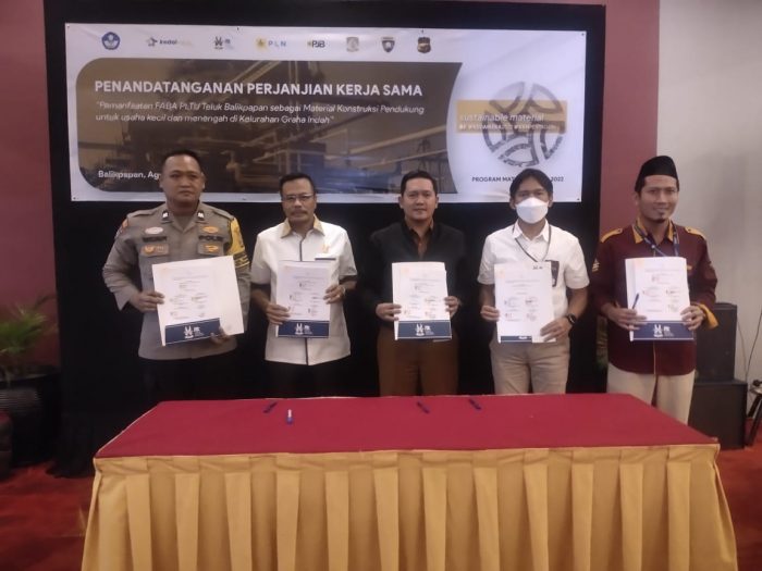 BERITAKALTIM.CO- Institute Teknologi Kalimantan (ITK) memfasilitasi kerjasama PT PLN (Persero) Unit Pelaksana Pengendalian Pembangkitan (PLN UPDK) Balikpapan dengan URK-FKPM Graha Indah Balikpapan terkait pemanfaatan Fly Ash dan Bottom Ash (FABA) PLTU Teluk Balikpapan sebagai material konstruksi pendukung usaha kecil dan menengah di kelurahan Graha Indah.
