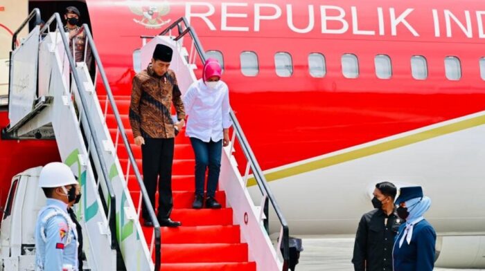 BERITAKALTIM.CO- Presiden Joko Widodo didampingi Ibu Iriana Joko Widodo tiba di Bandara Internasional Sultan Aji Muhammad Sulaiman Sepinggan, Kota Balikpapan, Provinsi Kalimantan Timur, pada Rabu, 22 Februari 2023, sekira pukul 12.48 WITA.