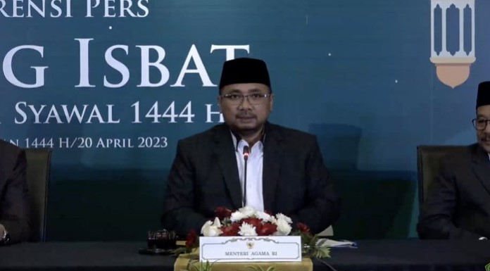 “Hilal tak memenuhi kriteria baru, sidang isbat secara mufakat menetapkan 1 Syawal pada hari Sabtu 22 April 2023,” kata Menteri Agama (Menag) Yaqut Cholil Qoumas dalam konferensi pers di kantor Kemenag, Jakarta, Kamis (20/4/2023).
