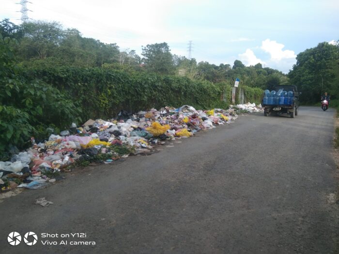 BERITAKALTIM.CO- Tumpukan sampah di jalan poros Sambaliung-Bangun, tepatnya di Kilometer 2, pasca lebaran Idul Fitri 1444 H kondisinya semakin parah. Tumpukan sampah kini telah memakan sebagian badan jalan.