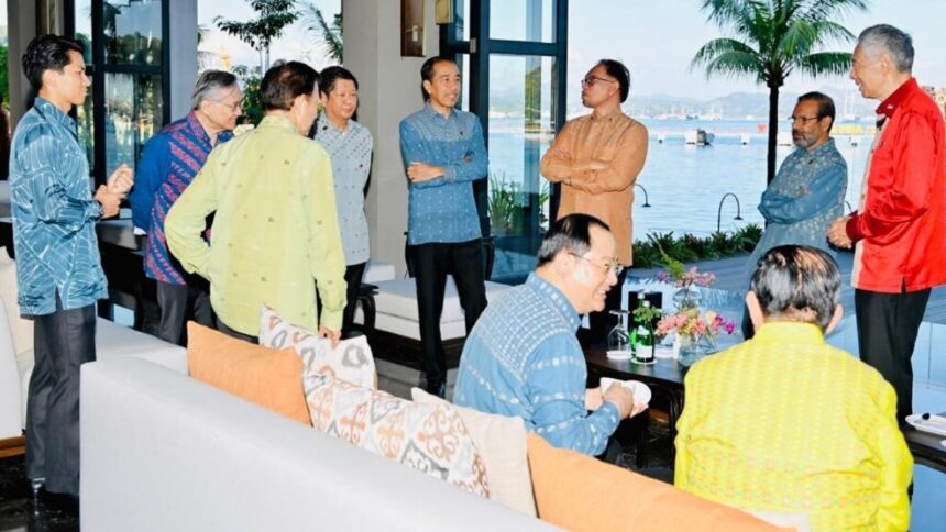 BERITAKALTIM.CO- Ada yang unik pada hari kedua perhelatan puncak Konferensi Tingkat Tinggi (KTT) ke-42 ASEAN di Labuan Bajo, Kabupaten Manggarai Barat, Provinsi Nusa Tenggara Timur (NTT) pada Kamis, 11 Mei 2023. Para pemimpin negara ASEAN tampak mengenakan baju tenun songke Manggarai.