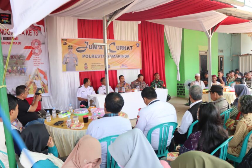 BERITAKALTIM.CO- Kapolresta Samarinda Kombes Pol Ary Fadli S.I.K., M.H., M.Si melaksanakan kegiatan “Jumat Curhat” bersama warga bertempat di Jalan Niaga Kelurahan Handil Bakti, Kecamatan Palaran, Jumat (01/09/2023) pagi.