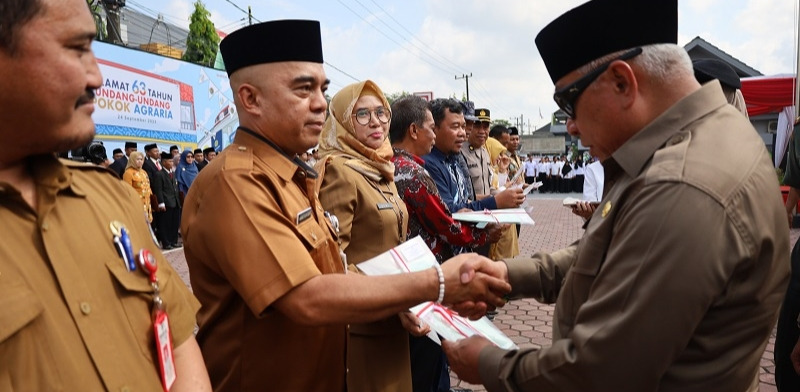 Sertifikat diberikan Gubernur Kaltim H Isran Noor kepada Asisten I Pemkab Kukar Akhmad Taufik Hidayat, pada acara Peringatan Hantaru ke 63 yang dipimpin oleh Gubernur Kaltim H Isran Noor, di Halaman Kantor Wilayah Badan Pertanahan Nasional Provinsi Kaltim Samarinda, Senin (25/9/23).