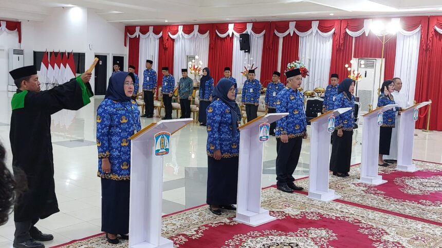 BERITAKALTIM.CO- Wali Kota Balikpapan Rahmad Mas’ud melantik 5 pejabat pimpinan tinggi pratama di lingkungan Pemerintah Kota Balikpapan di Aula Balaikota Balikpapan, Senin (18/4/2024)