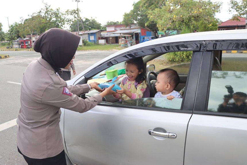 Dalam aksinya, Polwan Polres PPU juga memberikan pesan-pesan kebaikan dan semangat kebersamaan kepada masyarakat.