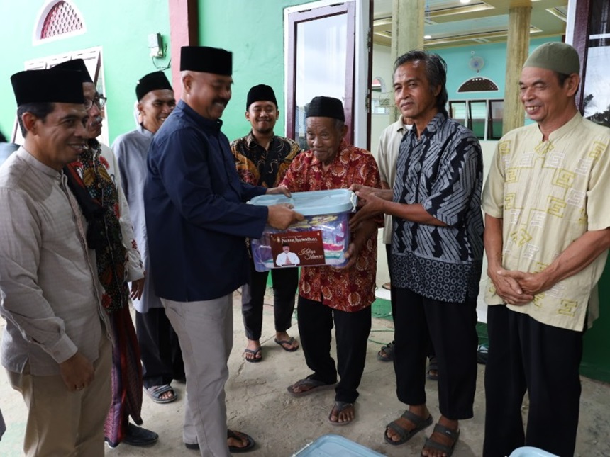Dalam silaturahmi itu, Bupati Edi Damansyah menyerahkan bantuan paket sembako, akte yayasan, dan Rp100 juta kepada masjid tersebut.