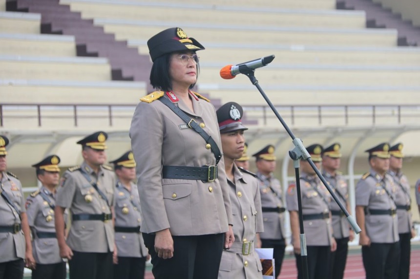 Dirprogsarjana STIK, Brigjen Pol Nurul Azizah didapuk sebagai Inspektur Upacara (Irup) membacakan amanat mewakili Ketua STIK Lemdiklat Polri Irjen Pol Nico Afinta.