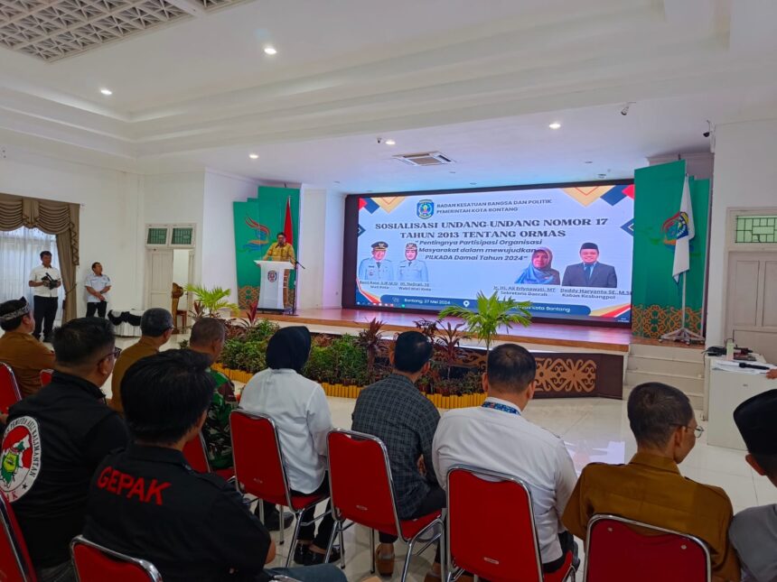 BERITAKALTIM.CO – Pemerintah kota Bontang melalui Badan Kesatuan Bangsa dan Politik (Bakesbangpol) kota Bontang menggelar Sosialisasi Undang-Undang Nomor 17 tahun 2013 tentang Organisasi Masyarakat (Ormas). Acara yang dilaksanakan di Pendopo Rumah Jabatan Walikota Bontang, jalan Awang Long, kelurahan Bontang Baru, kecamatan Bontang Selatan ini dibuka langsung oleh Walikota Bontang, Basri Rase, Senin (27/5/2024).