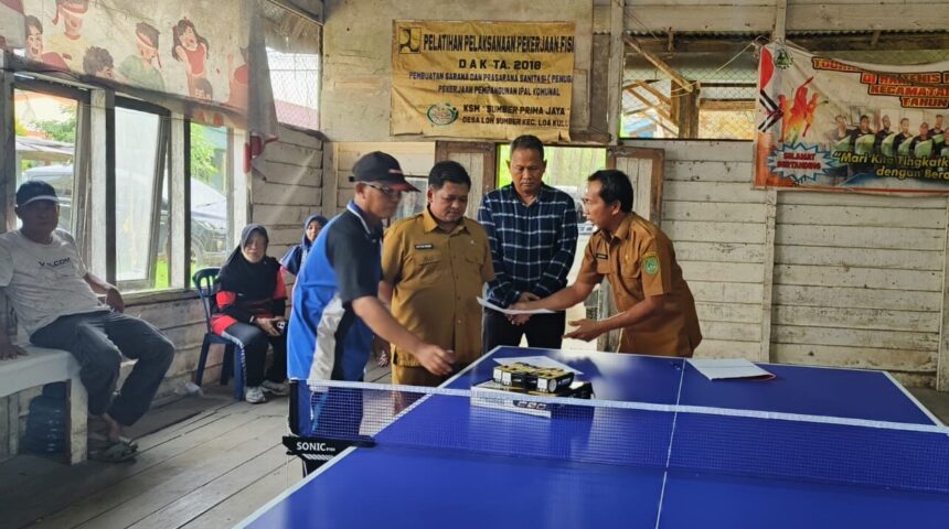 Bantuan tersebut, berupa satu set meja tenis, bola pingpong lengkap beserta sepasang bet, diserahkan langsung oleh Kepala Dispora Kukar, Aji Ali Husni, kepada PTM di Kecamatan Loa Kulu.