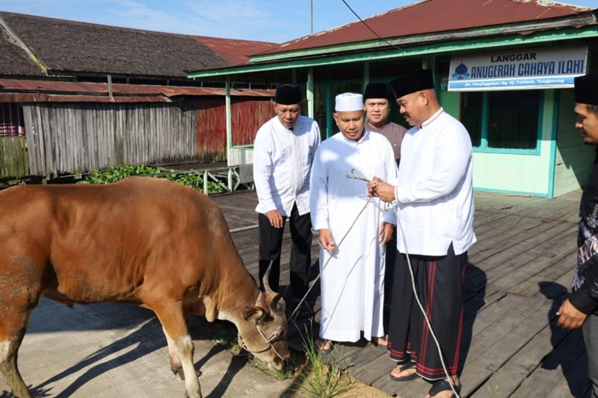 Untuk mempererat tali persaudaraan antar sesama umat manusia, Bupati Kutai Kartanegara (Kukar) Edi Damansyah menyerahkan sapi qurban di Langgar Anugerah Cahaya Ilahi di Jalan Penyinggahan Gang Hj Fatimah, Tenggarong, Senin (17/6/2024).