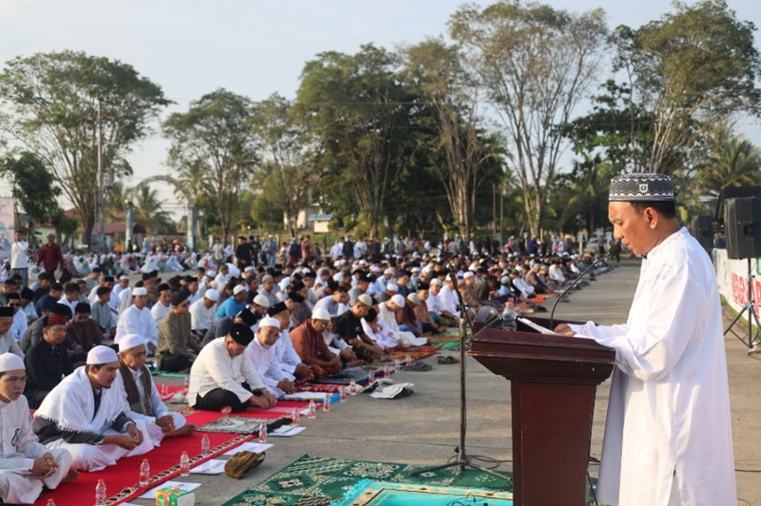 Suasana pagi yang sejuk dan penuh hikmat dirasakan seluruh jemaah mengawali untaian takbir, tahmid dan tahlil yang dilantunkan secara bergantian