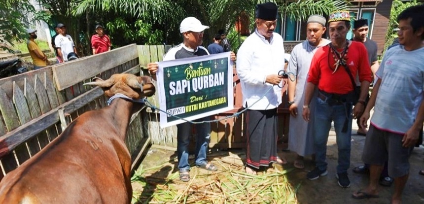 BERITAKALTIM.CO-Bupati Kutai Kartanegara (Kukar) Edi Damansyah menyerahkan seekor Sapi Qurban di Perumahan Korpri Desa Perjiwa Tenggarong Seberang, Senin (17/6/2024) setelah menyerahkan sapi qurban Pemkab Kukar di beberapa Ponpes di Tenggarong Seberang.