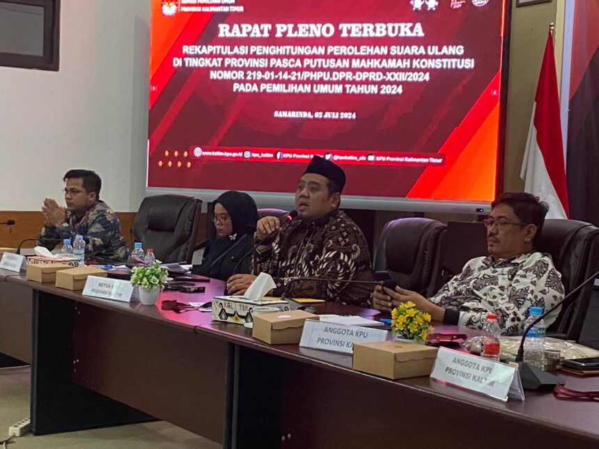Rapat pleno yang berlangsung di Aula KPU Provinsi Kaltim,menjadi puncak dari proses rekapitulasi penghitungan suara ulang (PSU) yang telah melalui berbagai tahap. Hasilnya, Partai Demokrat yang mengajukan gugatan ke MK (Mahkamah Konstitusi) atas perolehan hasil suara, tetap kalah selisih suara oleh PAN (Partai Amanat Nasional).