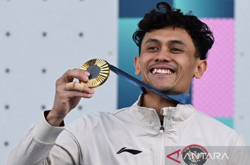 Sedangkan atlet angkat besi (lifter) putra Rizki Juniansyah berhasil menyabet medali emas pada pertandingan angkat besi kelas 73 kg putra Olimpiade Paris 2024 pada Jumat (9/8).