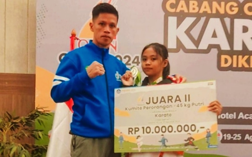 BERITAKALTIM.CO-Adinda Septiani Ramadani siswi SMPN 4 Muara Badak Kutai Kartanegara (Kukar), berhasil menyumbangkan medali perak cabang olahraga Karate untuk Kalimantan Timur, pada Olimpiade Olahraga Siswa Nasional (O2SN) tingkat Nasional di Jakarta, yang digelar 19-25 Agustus 2024.