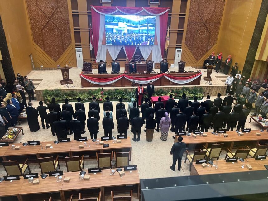 BERITAKALTIM.CO – Sebanyak 45 anggota Dewan Perwakilan Rakyat Daerah (DPRD) Kota Samarinda periode 2024-2029 resmi dilantik dalam sebuah Rapat Paripurna DPRD Kota Samarinda, Rabu (28/8/2024). Acara yang digelar di Gedung DPRD Samarinda Lantai 2, tersebut menandai peresmian pemberhentian anggota DPRD periode 2019-2024 dan pengucapan sumpah janji bagi anggota baru.