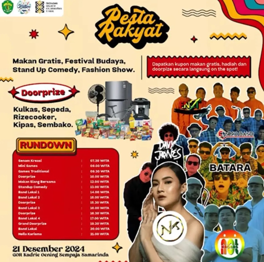 “Ayo warga Kaltim, datang dan saksikan pesta rakyat. Banyak kegiatan menarik yang telah kami siapkan untuk Anda semua,” KATA Restiawan saat dikonfirmasi, Jum’at (20/12/2024)