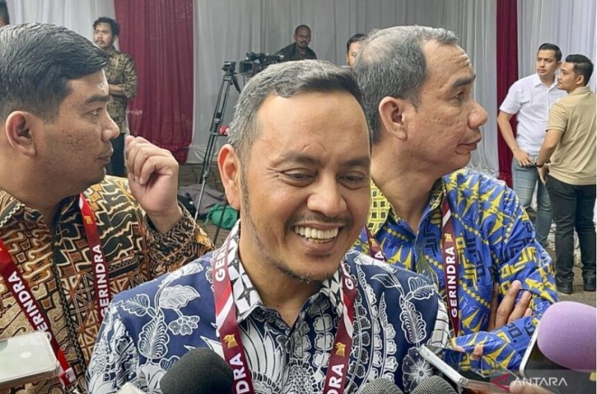 Ketua DPP NasDem Willy Aditya, saat ditemui di pelataran gerbang Padepokan Garuda Yaksa, Hambalang, Jumat siang menjelaskan Surya Paloh bakal hadir acara puncak peringatan HUT Ke-17 Partai Gerindra di SICC, Sentul, Kabupaten Bogor, Jawa Barat, Sabtu (15/2).