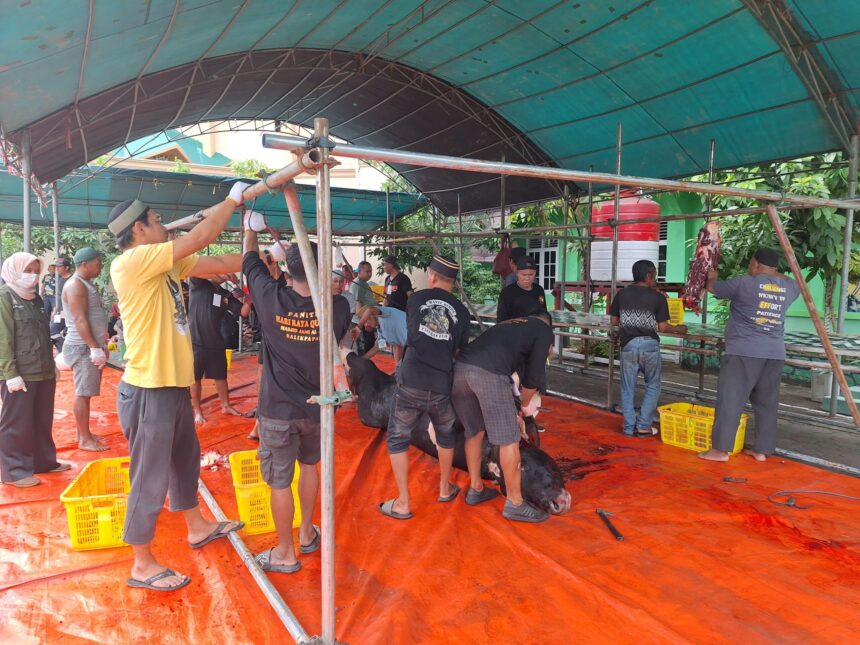 Selain sapi bantuan Presiden, panitia juga menyembelih 14 ekor sapi hasil partisipasi warga serta 6 ekor kambing. Proses penyembelihan dilakukan sejak pagi hari oleh tim gabungan yang terdiri dari panitia, relawan, serta petugas dari Rumah Potong Hewan (RPH) Balikpapan.