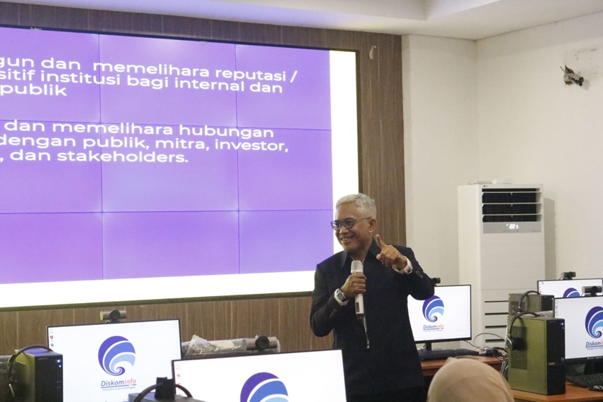 Pranata Humas Ahli Muda Diskominfo Kukar Zainul Effendi Joesoef menyampaikan materi “Government Public Relations” yang membahas peran strategis kehumasan pemerintah dalam membangun komunikasi yang efektif dan konstruktif dengan masyarakat dan stakeholders lainnya.
