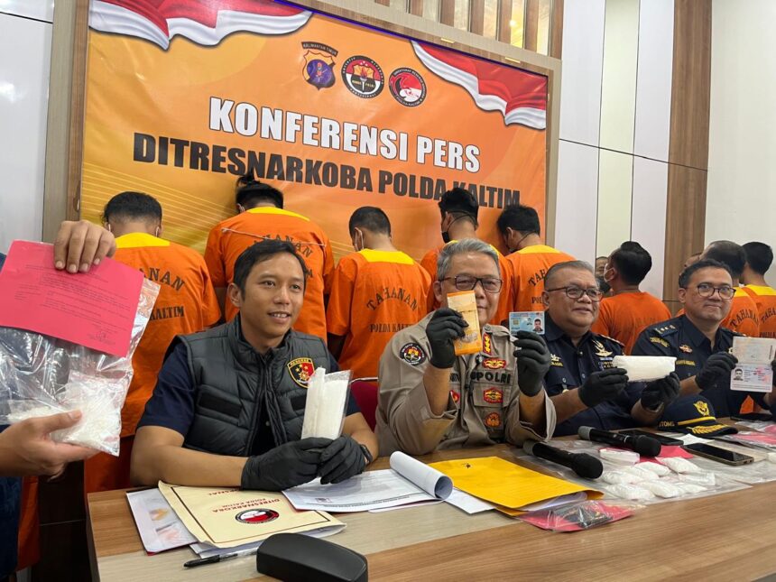 BERITAKALTIM.CO- Kepolisian Daerah Kalimantan Timur (Polda Kaltim) kembali mencetak prestasi dalam pemberantasan peredaran narkoba lintas negara. Dalam kurun waktu dua minggu, mulai September hingga Oktober 2025, jajaran Direktorat Reserse Narkoba (Ditresnarkoba) Polda Kaltim berhasil mengungkap enam kasus narkotika dan mengamankan 10 tersangka, termasuk satu warga negara Malaysia berinisial NA, yang berperan sebagai kurir jaringan internasional.