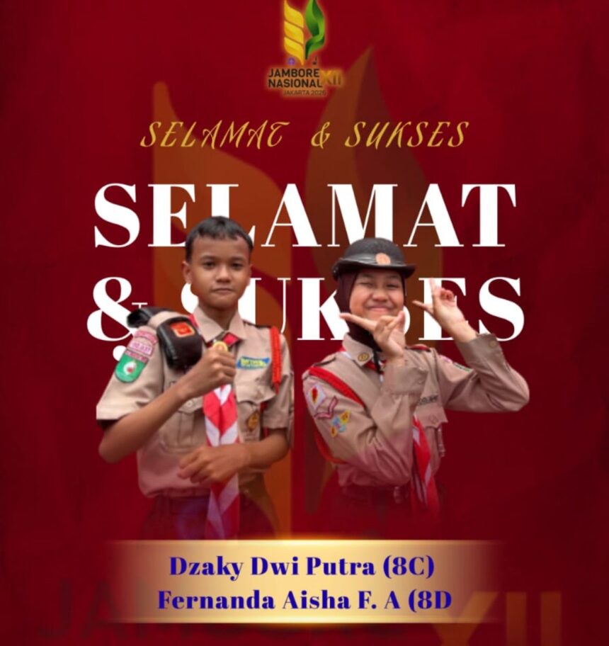 Kedua siswa tersebut adalah Dzaky Dwi Putra (kelas 8C) dan Fernanda Aisha Faiha Asra (kelas 8D). Keduanya lolos seleksi dan akan mewakili daerah dalam ajang kepramukaan tingkat nasional tersebut.